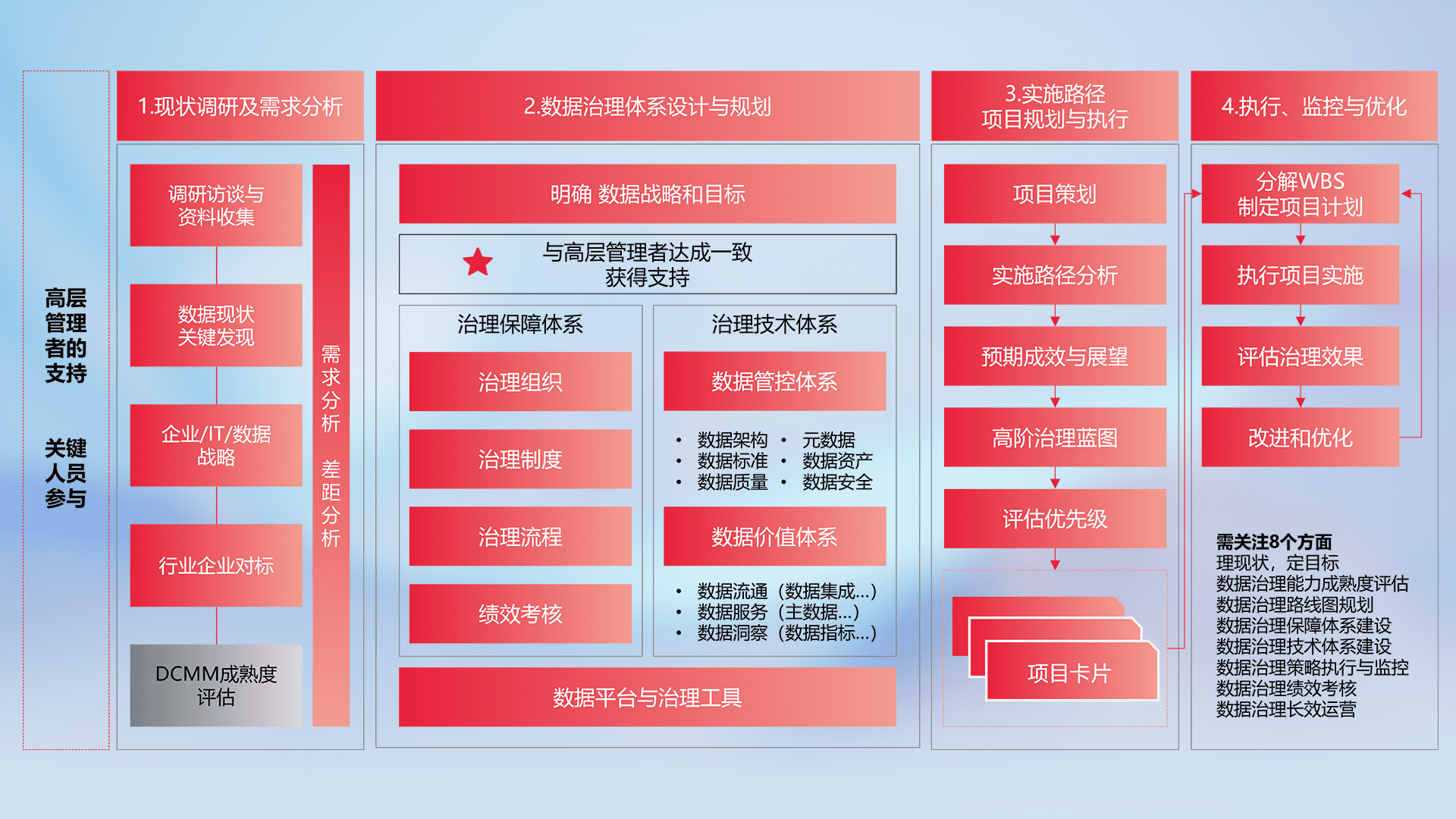 制定并执行统一的数据标准,,,规范数据定义和格式,,,消除冗余和不一致性,,,实现跨部门和跨系统的数据一致性,,,为企业提供标准化的数据基础。。。